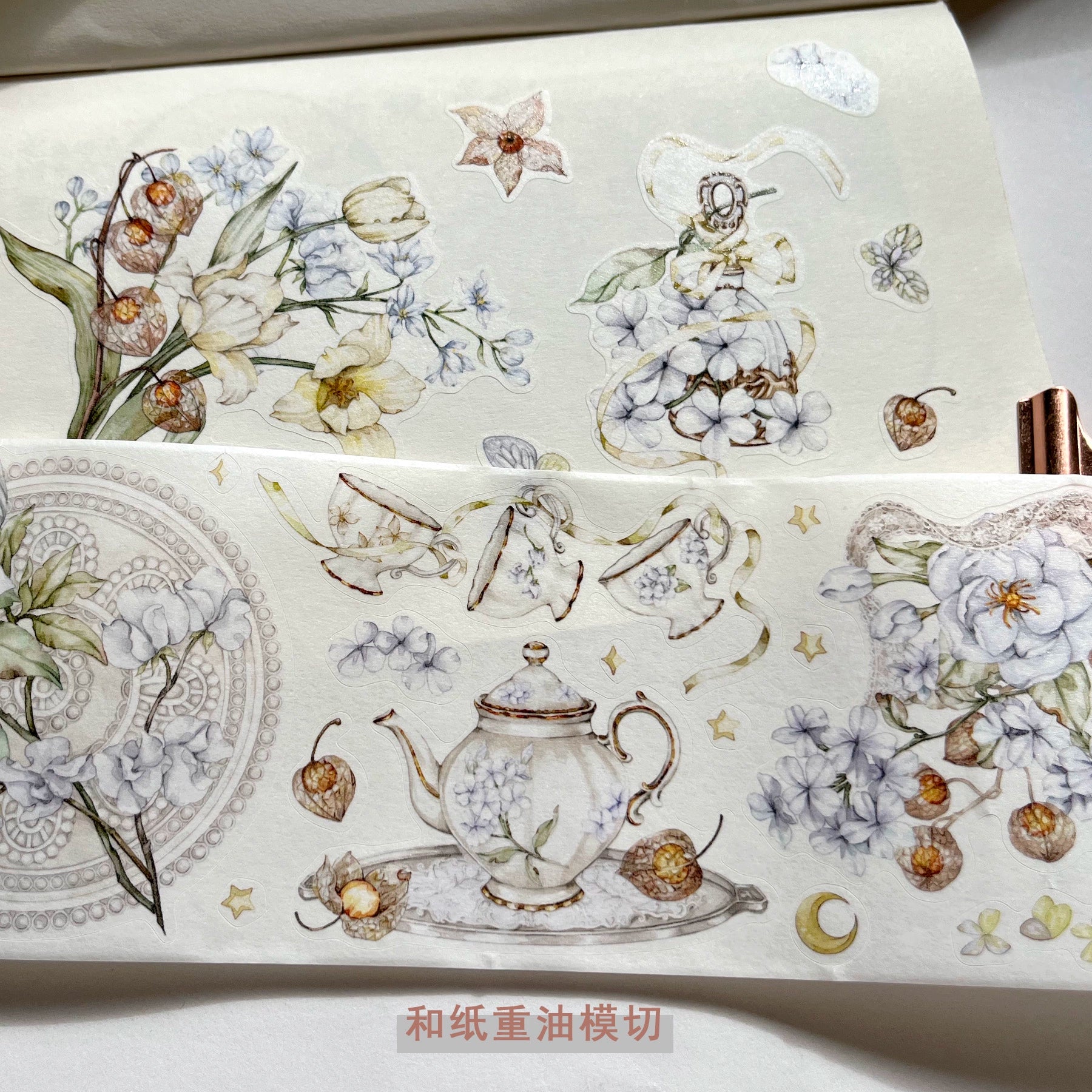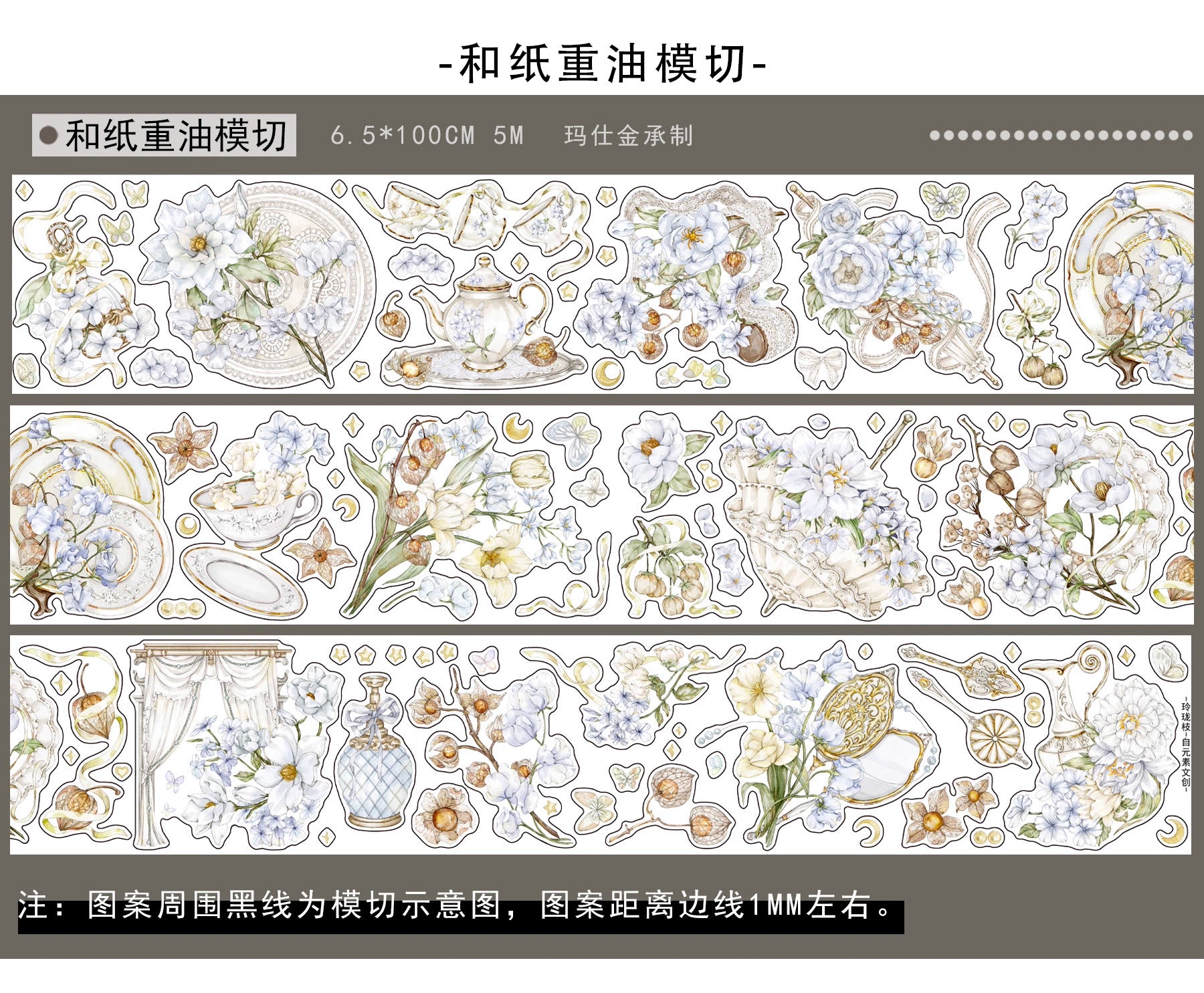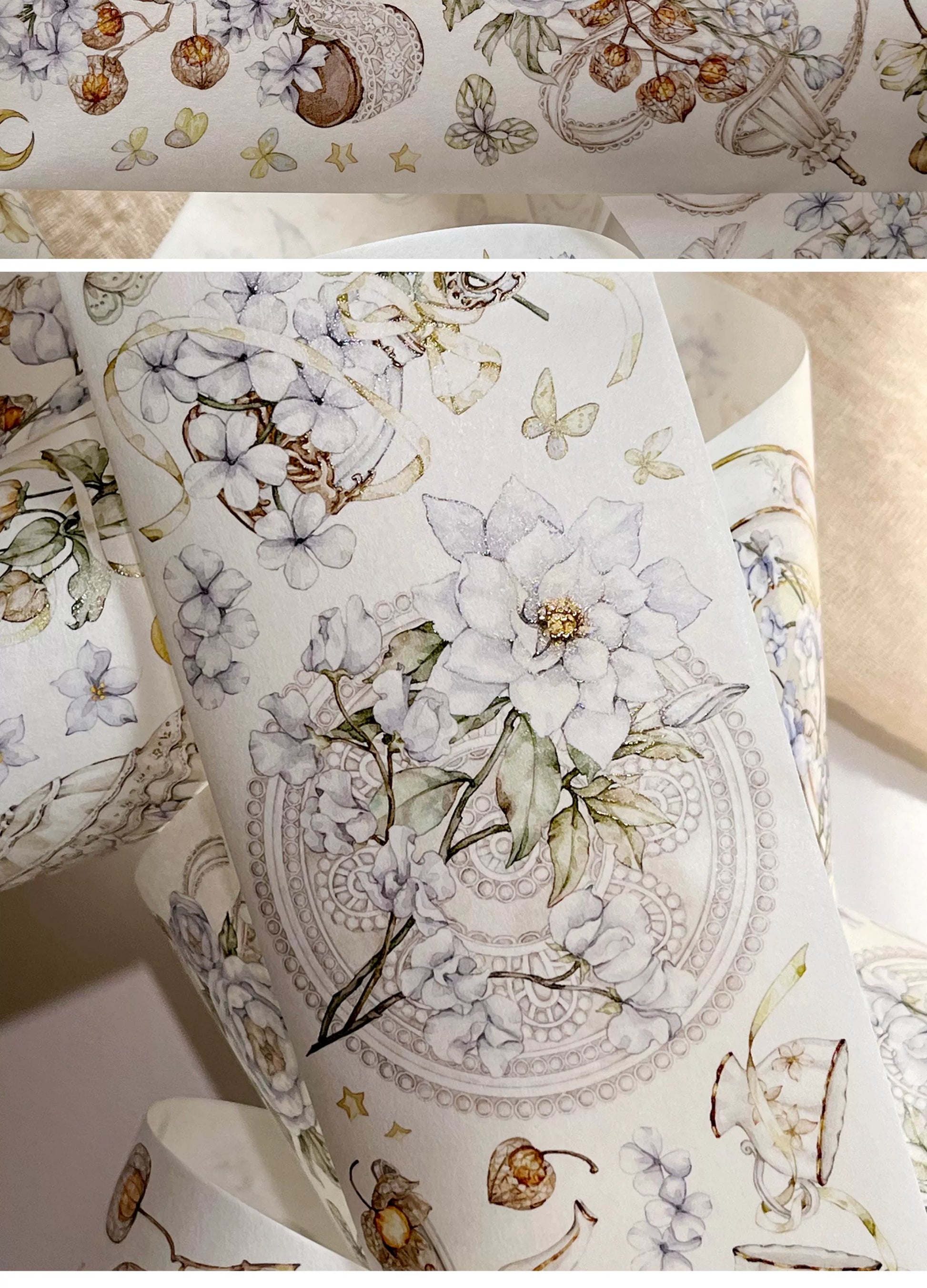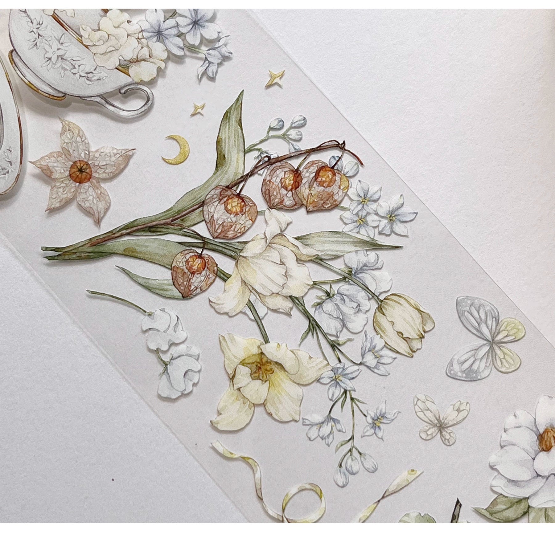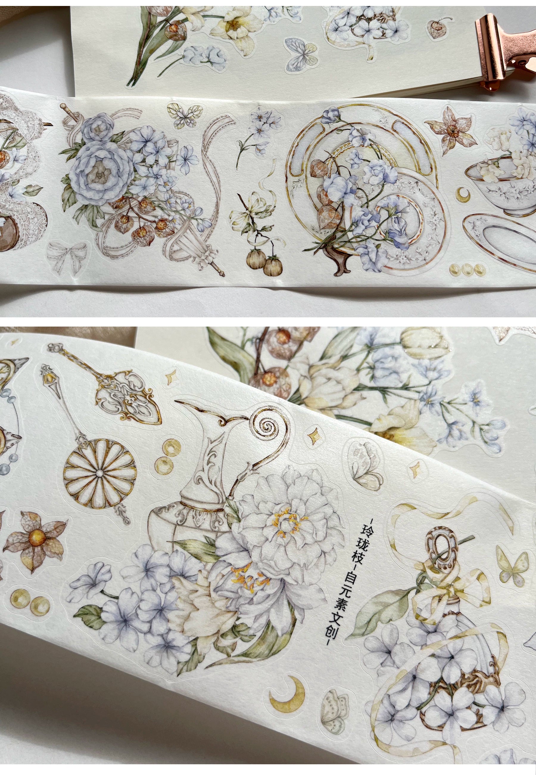 ZiYuanSu【LingLong Branch】Background Flower Pre-cut Washi/PET Tape,for Scrapbook Supplies,Scrapbook Tape Stickers,Junk Journal Supplies