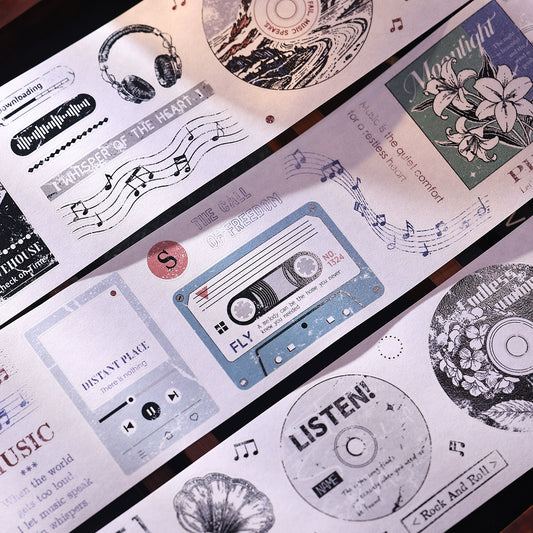 XiaoBaiJia【Echo】Light Retro Orginal Design Bordered Records Washi Pet Tape Landscape Stickers